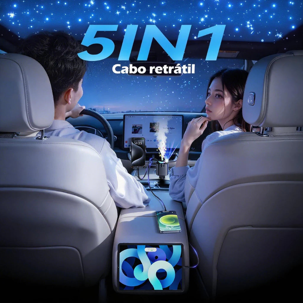 O Neo Charge é um carregador automotivo multifuncional que une carregamento rápido de até 45W, cabo USB-C retrátil, luz ambiente premium e função de aromaterapia, oferecendo muito mais do que energia: uma experiência superior em cada trajeto.
